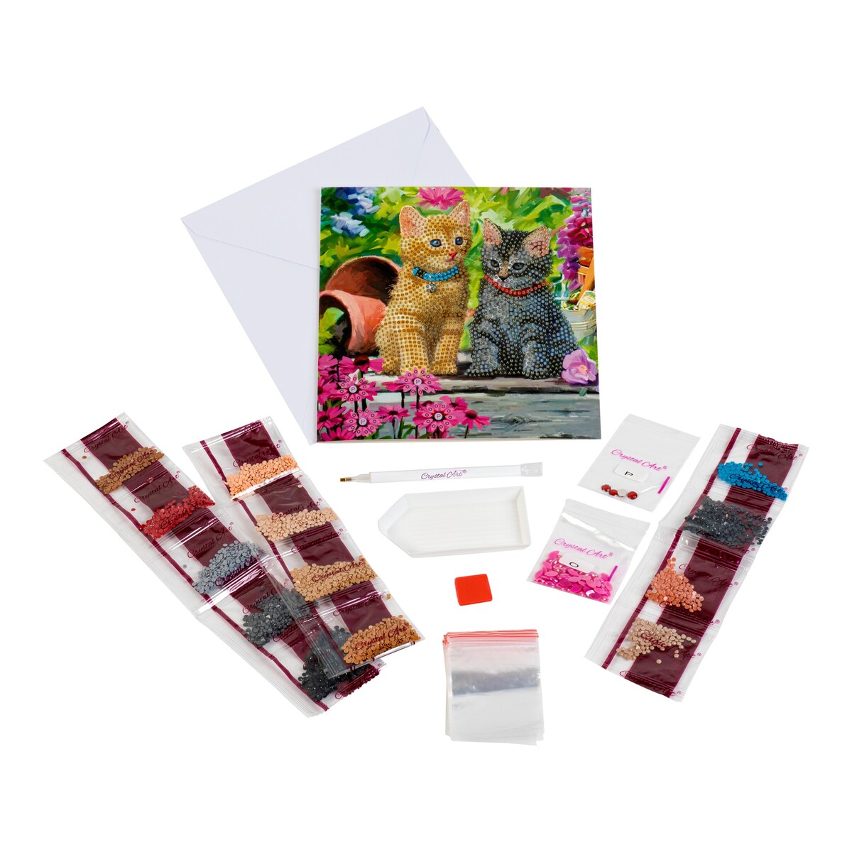 Grußkarten – Überraschen Sie Ihre Lieben mit einer selbstgestalteten, funkelnden Grußkarte zum Aufklappen. Bastel-Set mit Vorlage, Kuvert, Zauberstift, vielen bunten Steinchen und Schälchen zum Sortieren der Steinchen.