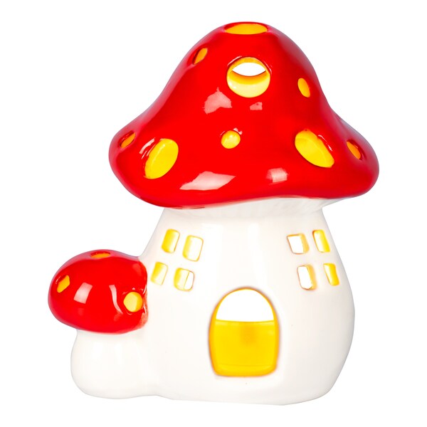 Cette maison extraordinaire pour bougies à chauffe-plat fait entrer la saison dorée dans vos quatre murs. L'aspect champignon mouche apporte une touche de forêt féerique, tandis qu'à l'intérieur, une petite bougie chauffe-plat assure une lueur chaleureuse. Les fenêtres permettent à la lumière de s'échapper doucement vers l'extérieur, créant ainsi une ambiance chaleureuse, surtout le soir. Qu'il s'agisse d'une pièce unique ou d'un élément de votre décoration automnale, cette maisonnette en céramique apporte lumière, charme et une bonne dose de convivialité à votre intérieur.